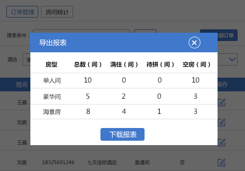 参会嘉宾的入住数据、酒店信息等所有相关数据分房系统都会在后台进行全面记录,工作人员可以实时查看房间余量,每位嘉宾的入住状态等信息。